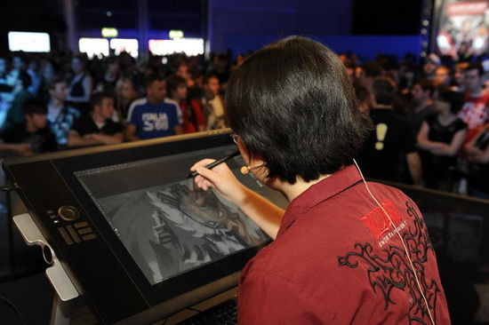 暴雪艺术家GraceLiu在2012科隆游戏展上的绘画表演上。