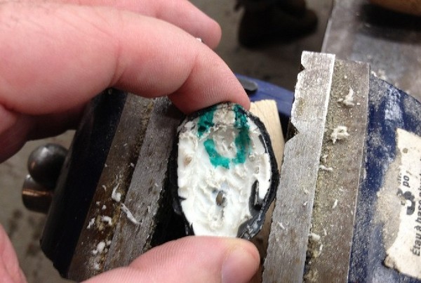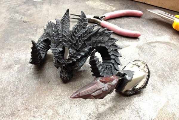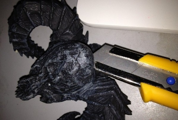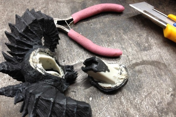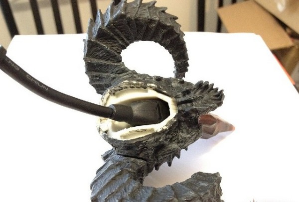 最后, 在后面割开一个小洞让USB线伸出来, 然后把这个部分涂上胶水并和骷髅组合上.