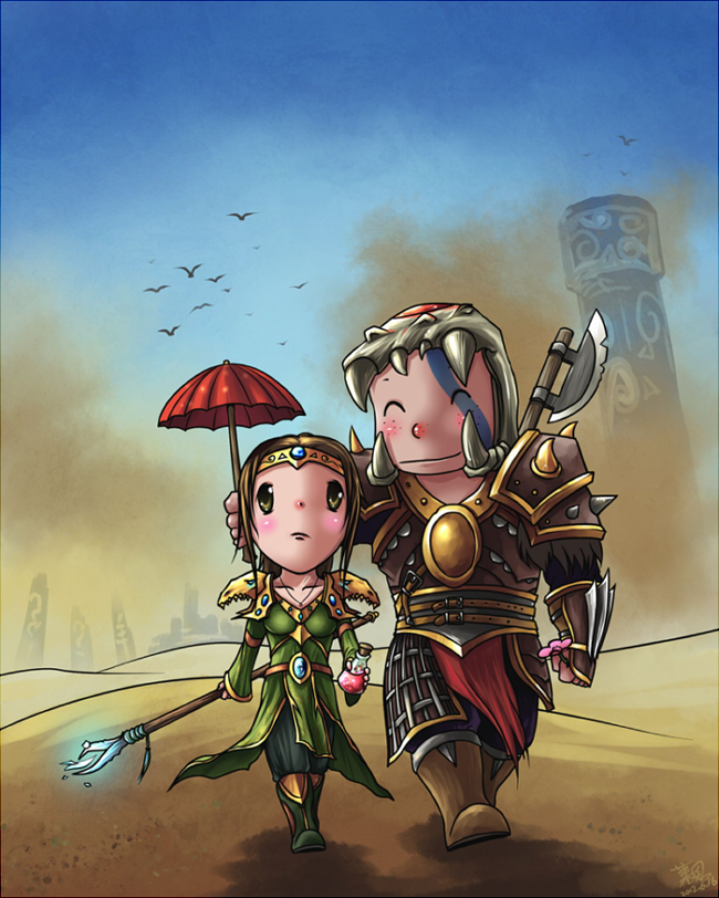 暗黑Q版漫画一张:萌系猎魔人与法师