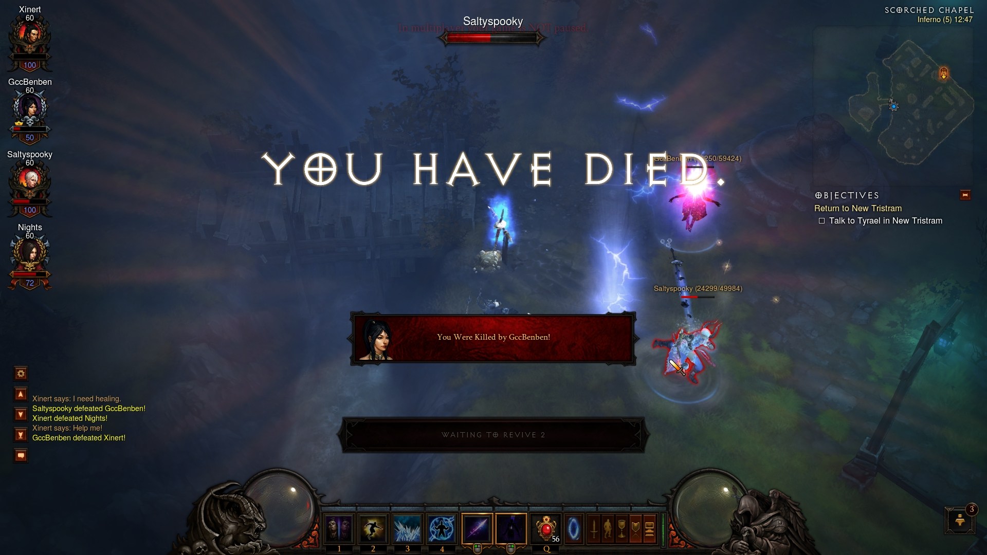 玩家灰调 提供的一组暗黑破坏神3多人游戏截图,相比双人决斗,多人战斗更加激烈和残酷,你随时需要考虑各种可能发生的情况,是否被敌人同时攻击等等。
