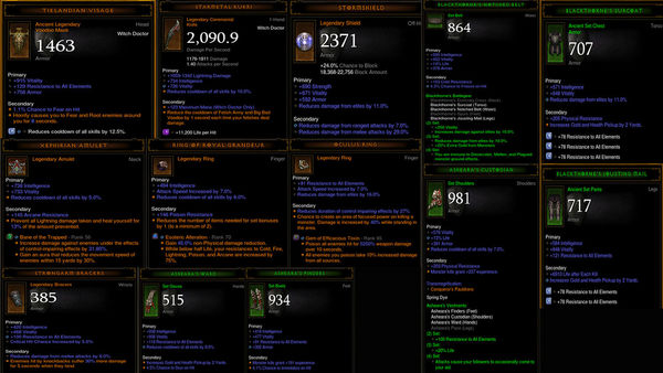 限制效果持续时间缩短需要达到40%以上(来自戒指和头部),否则充能+恐惧词缀的精英怪的组合技会很麻烦,因为你是无法干扰怪物施放充能的(而这也会附带恐惧效果),也正是因此,赛飞利安护符是必备之选。