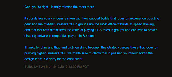 社区经理 Tyvalir 很快进行了回应,对偏题**并且也表示也将把这个区别转达给开发团队。